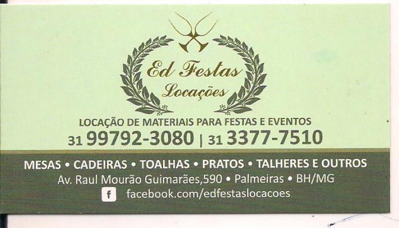 ED FESTAS LOCAÇÕES ( AV,RAUL MOURÃO GUIMARÃES ,590- PALMEIRAS) 31- 3377-7510 / 99792-3080
