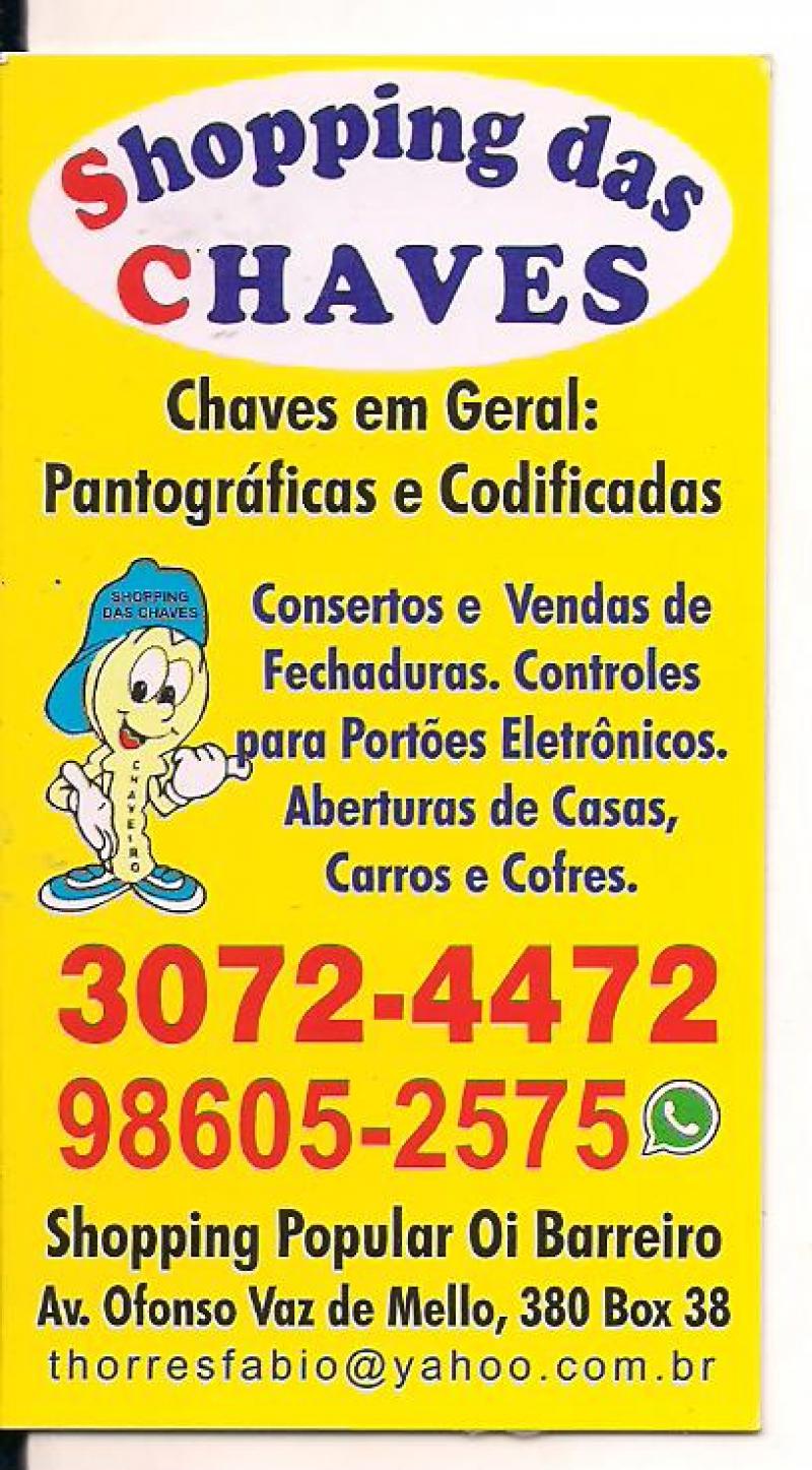 SHOPPING DAS CHAVES ( AV: AFONSO VAZ DE MELLO , 380- BOX 38 / BARREIRO - BH ) 31- 3072-4472 / 98605-2575( ZAP)
